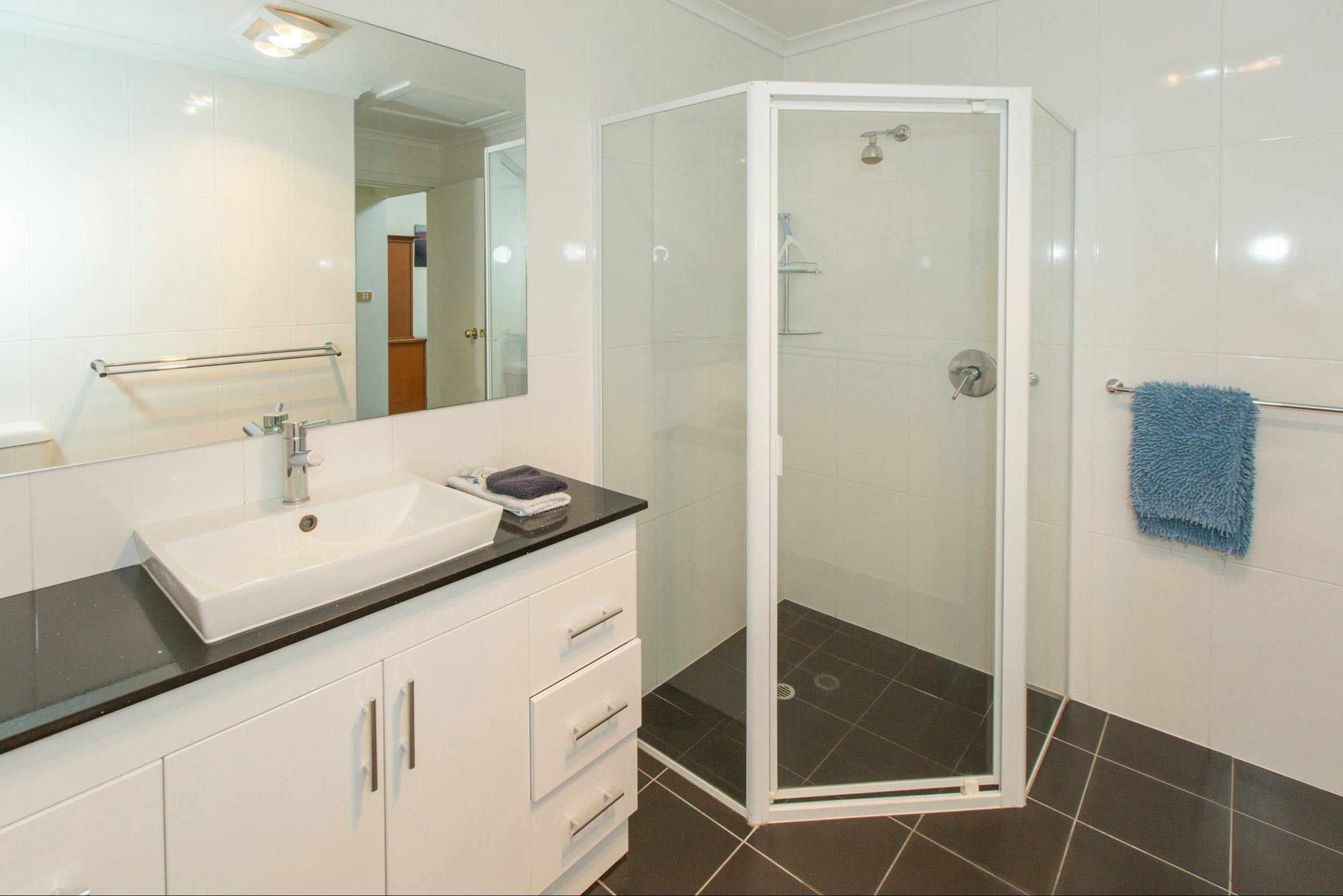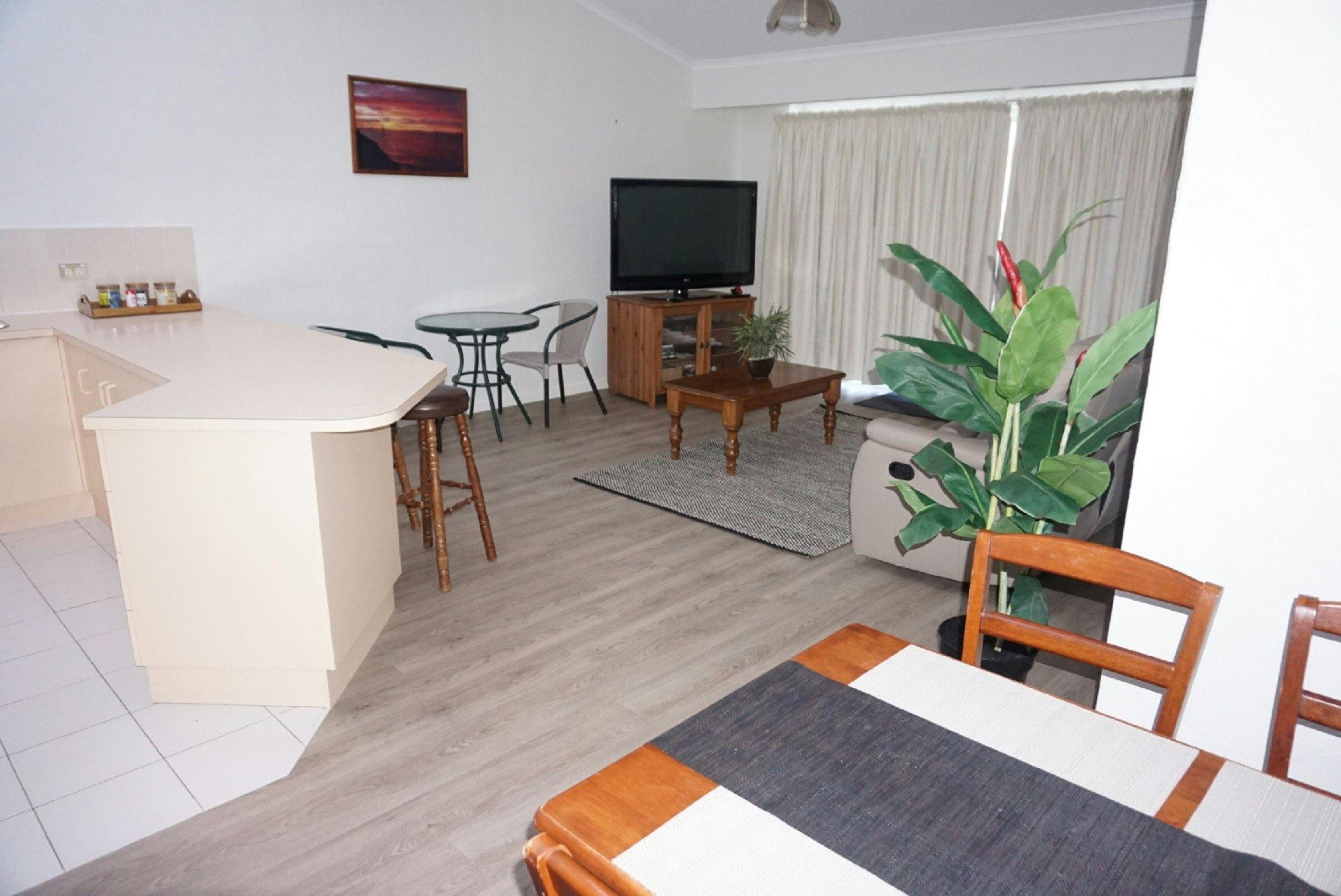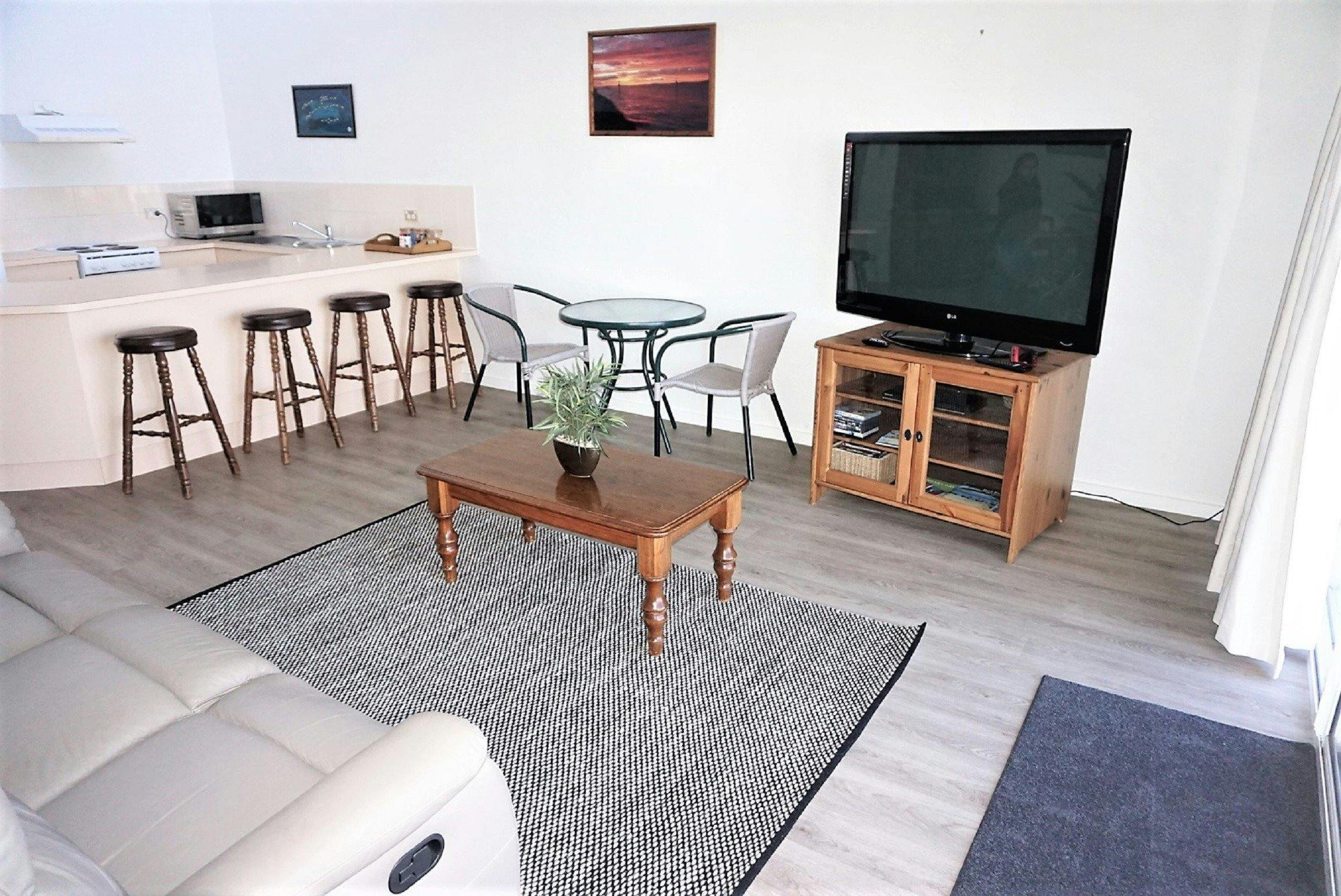 There is a compact open-plan living area, with self-contained kitchen including a microwave and television, DVD, and stereo in the lounge area. The unit has reverse-cycle air conditioning, pedestal fans and a bath. The laundry has a washer, dryer and iron and all linen is supplied.