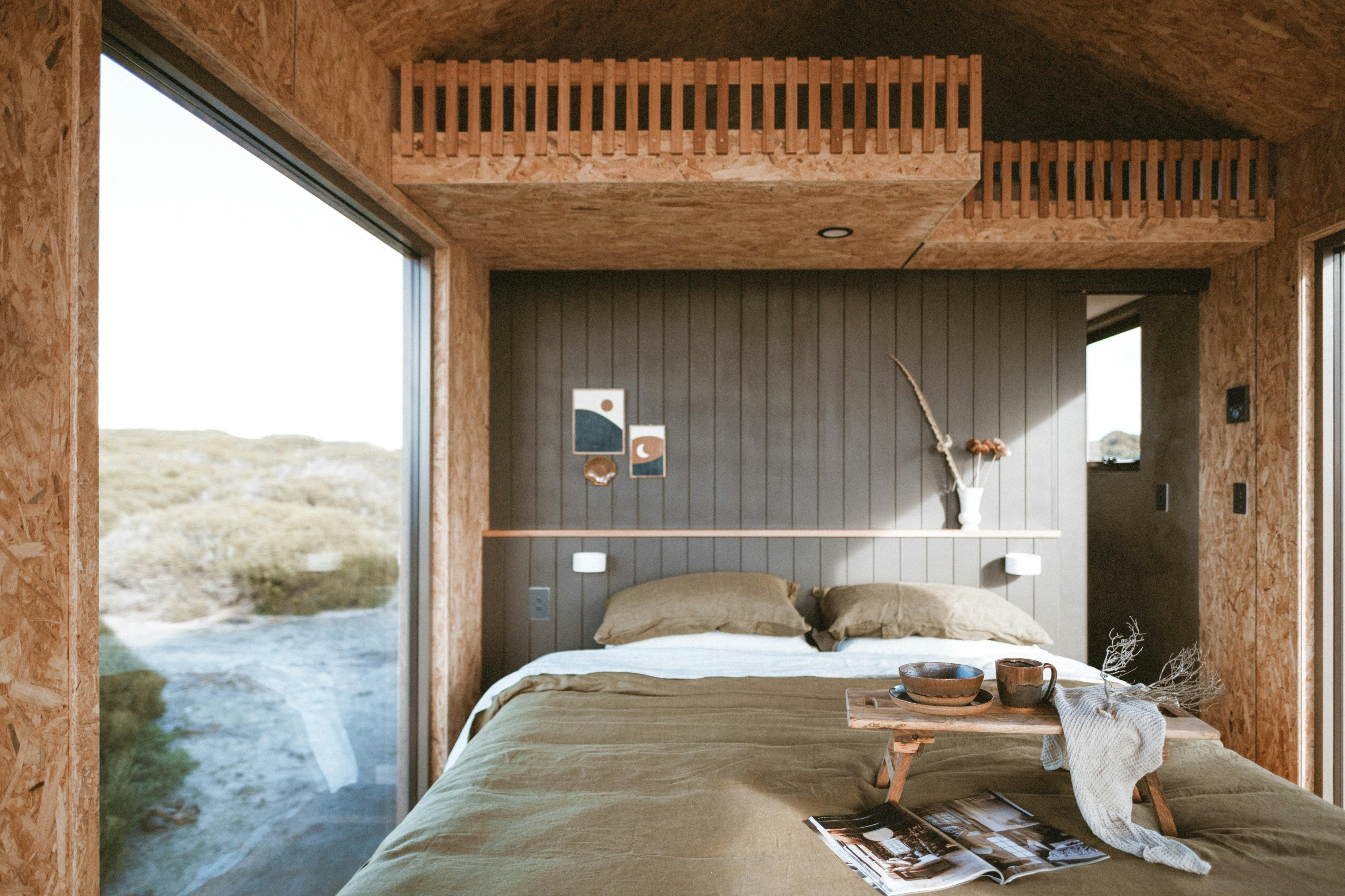 You’ll find Maldhi (Mal – di ) A Barngarla word meaning Night, sky. The immersive tiny cabin, is nestled on the edge of a picturesque gully overlooking the coastal cliffs of Sleaford Bay, on the south coast of the Eyre Peninsula. It features world-class views across Sleaford Bay to the vast expanse of pure white sandhills separating Port Lincoln National Park from the rugged southern ocean.