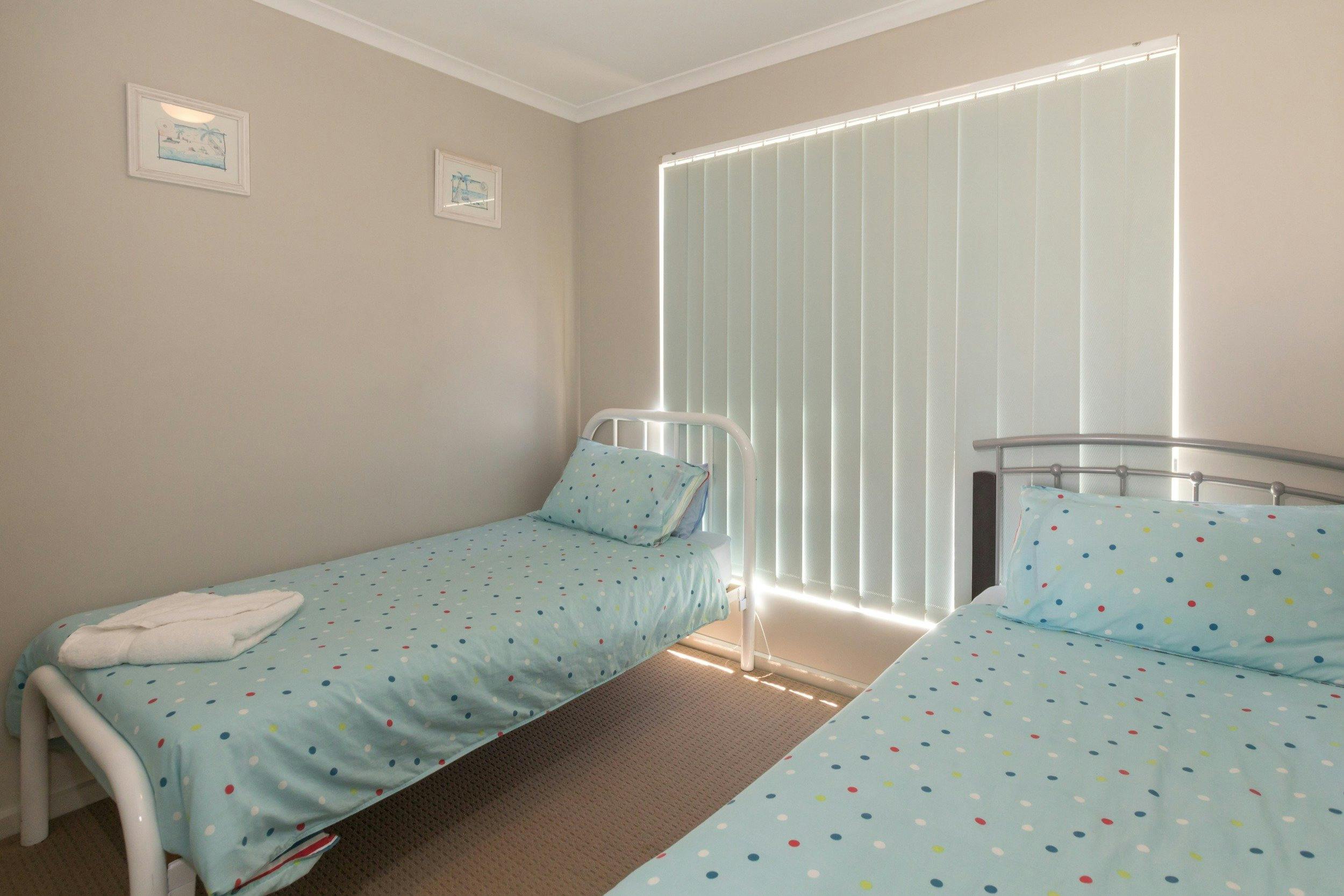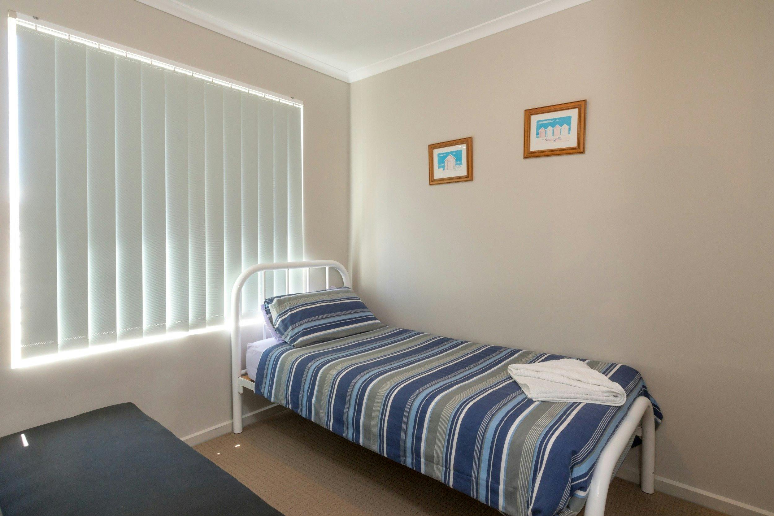 The home consists of three bedrooms, two bathrooms. Main bedroom has queen size bed, second bedroom has 2 singles and third bedroom has a single bed and futon. There is a double sofa bed located in the downstairs sun-room. The home has reverse cycle air conditioning and ceiling fans. It is fully self-contained including microwave, TV, DVD player, washing machine and dryer. Linen and towels are supplied.