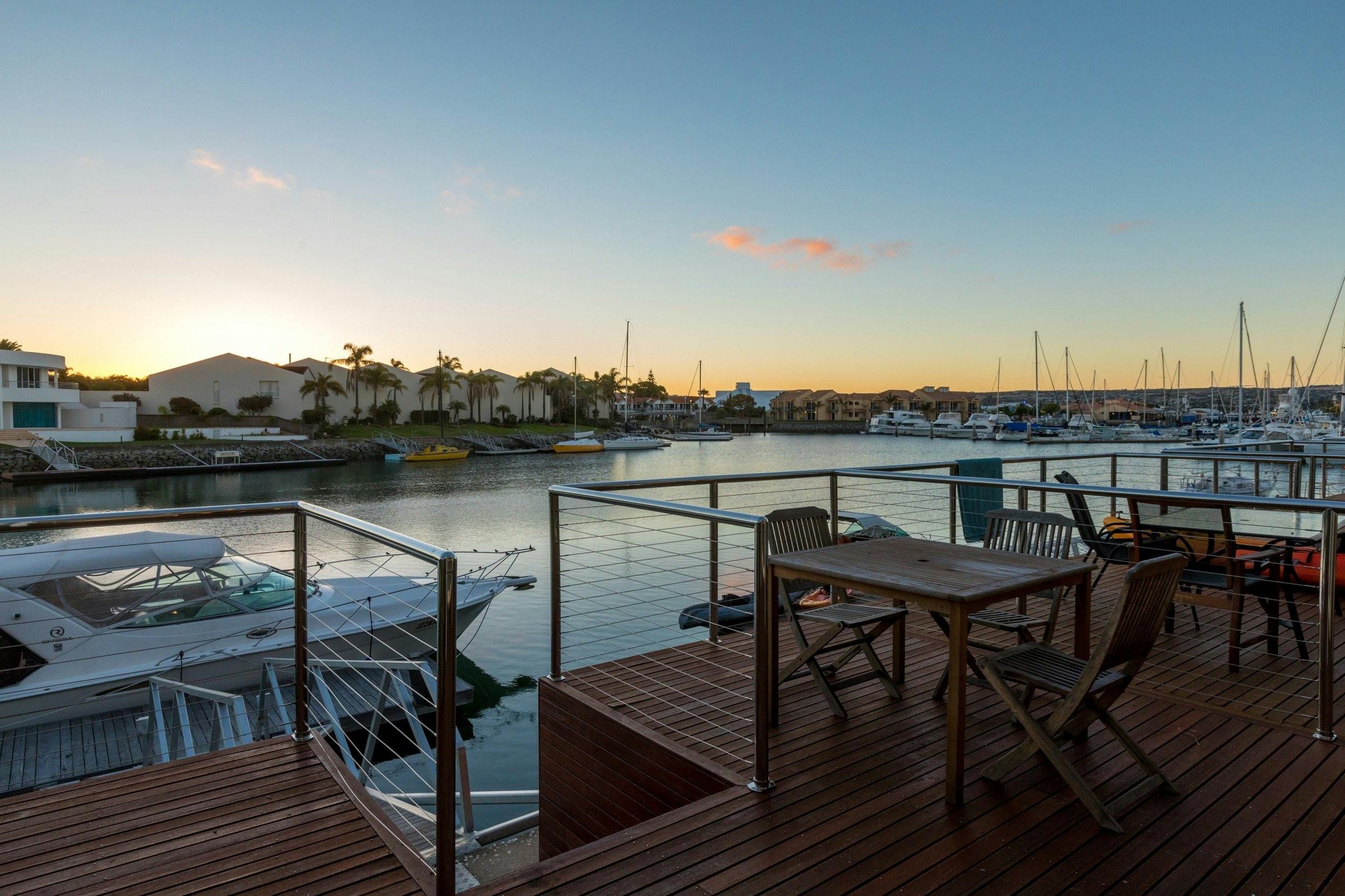 Mermaids Holiday Home is a two-story waterfront Townhouse overlooking the Port Lincoln recreational marina. The Private Pontoon can be used for swimming and fishing at all times and as a boat mooring on request*.