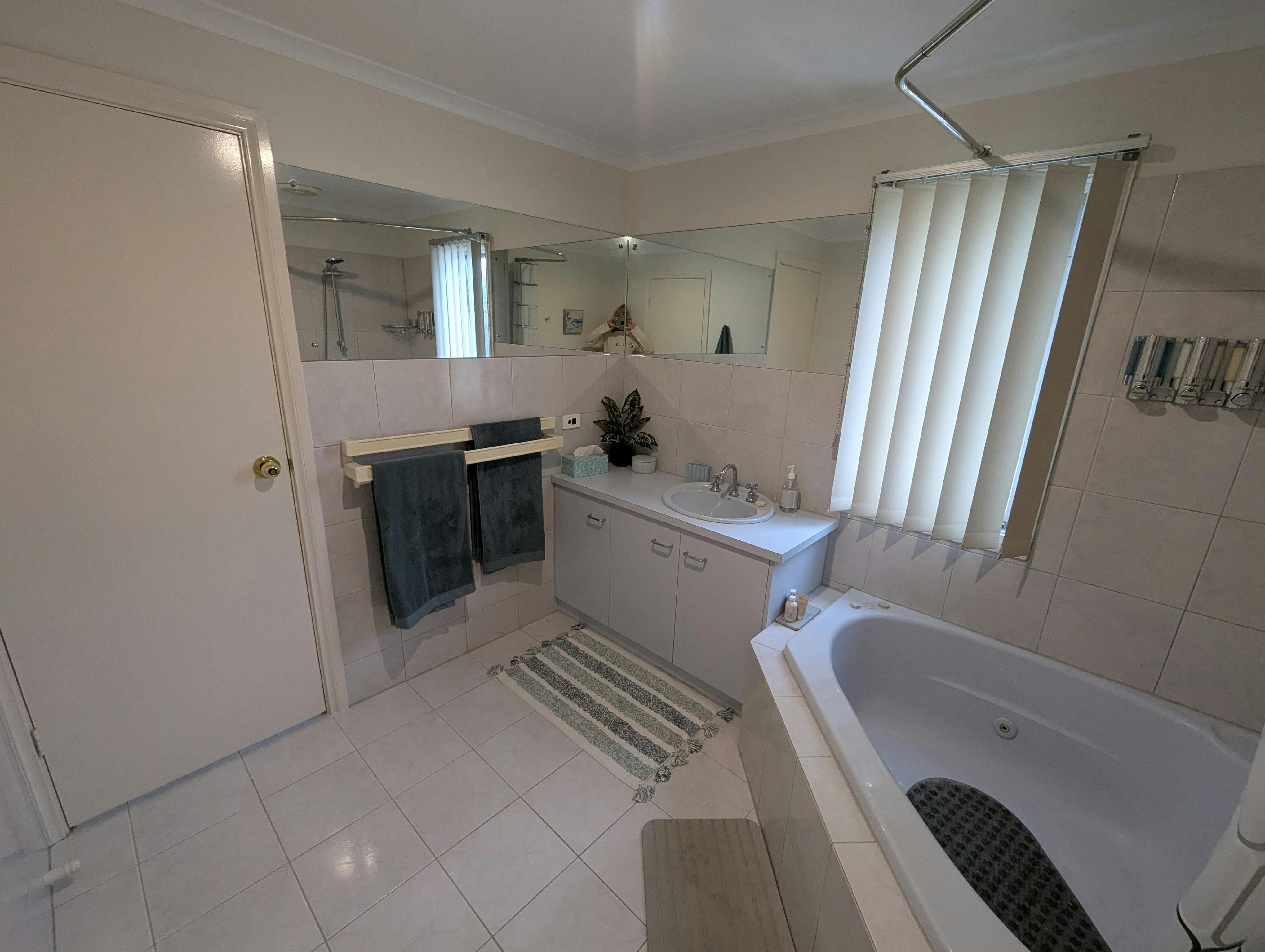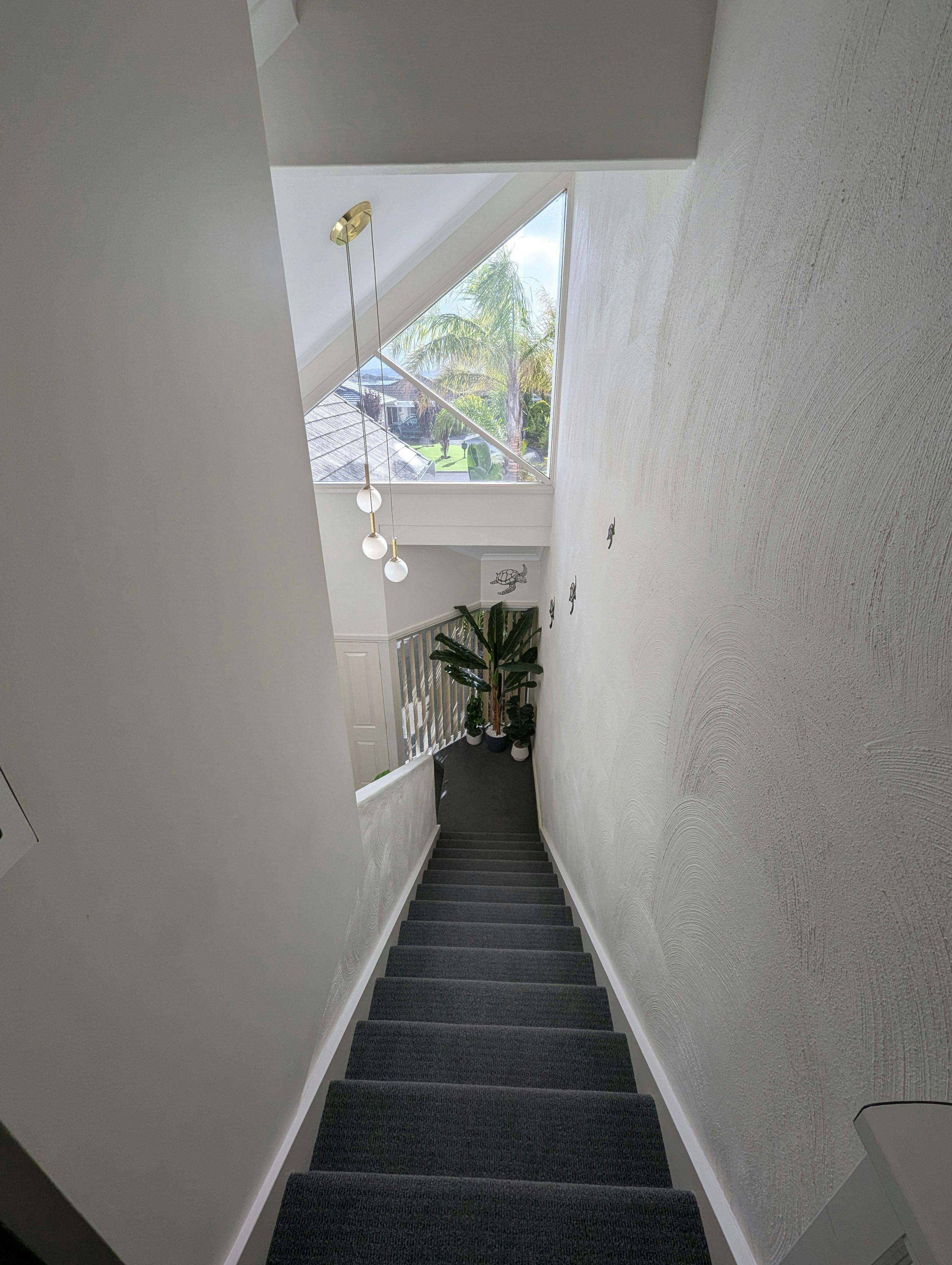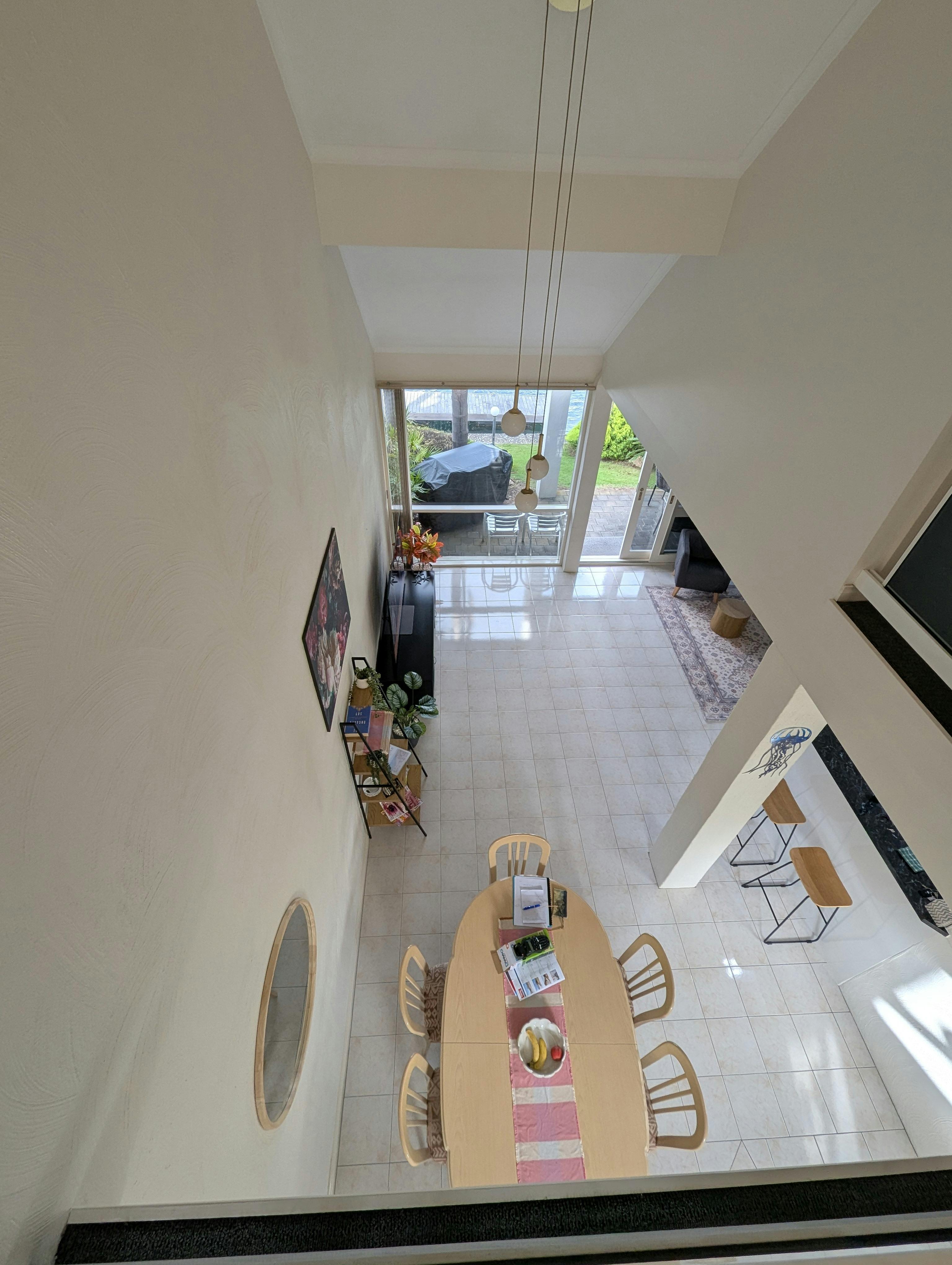 2 level modern townhouse with an open plan kitchen, dining & living, with a family bathroom & queen bedroom downstairs, upstairs has a main room with Queen bed 2 way bathroom. Third bedroom has 2 single beds perfect for children.