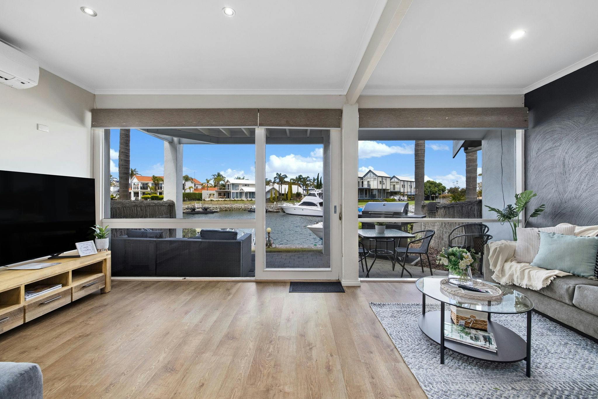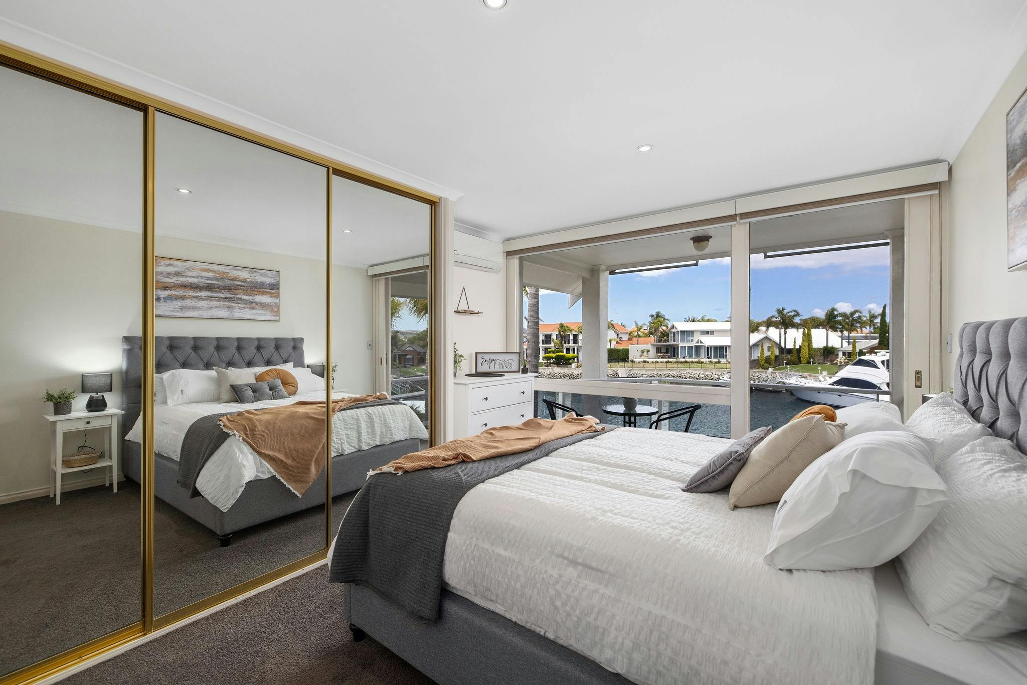 A large entrance greets you as you walk through the doorway and you’re naturally drawn to the amazing views of the calm waterway.