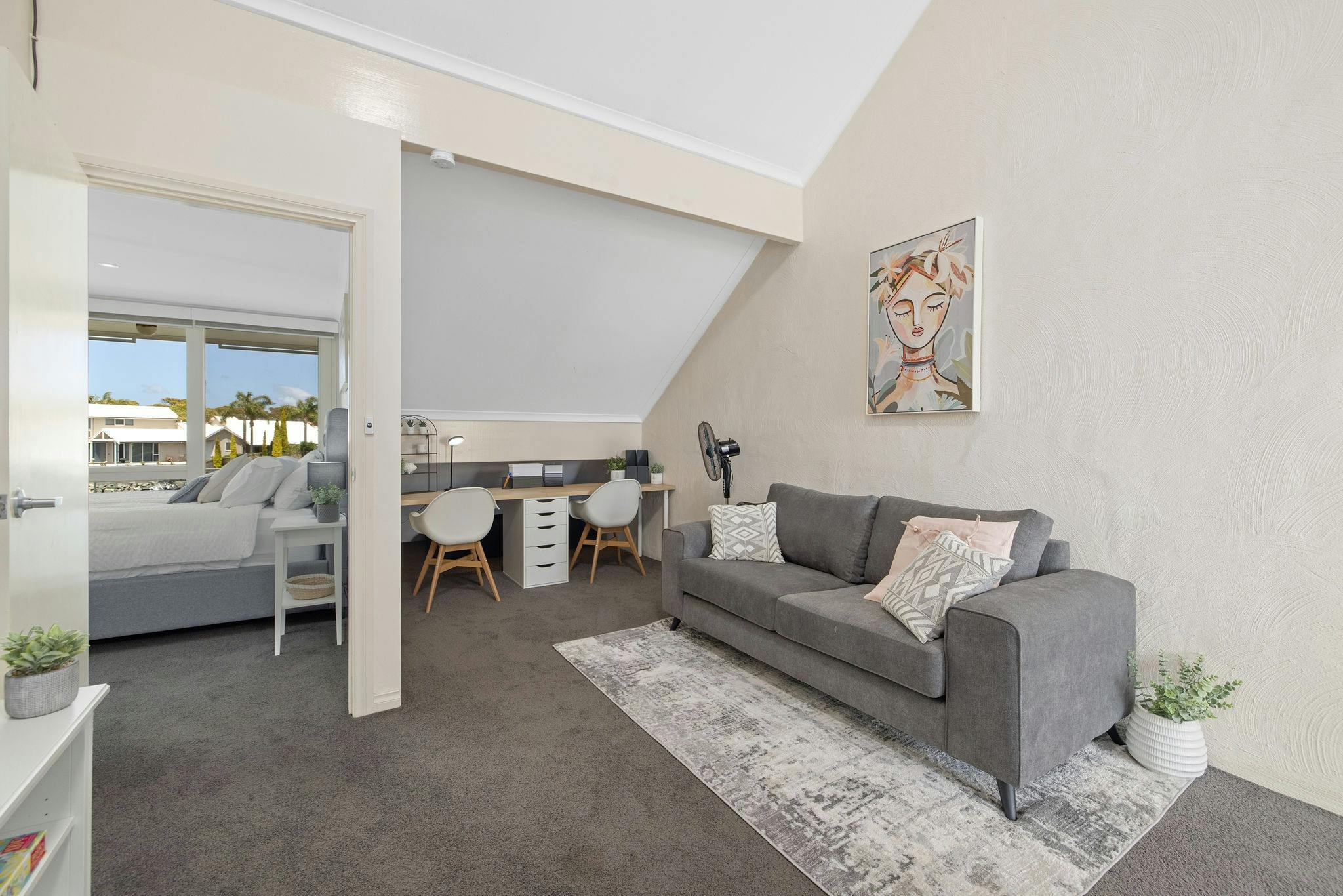Upstairs features the master bedroom with en-suite, a balcony, and stunning water views. The third bedroom with two single beds is perfect for the kids, as well as a second living area with TV and study area, to suit two if needing a work station while on holidays.