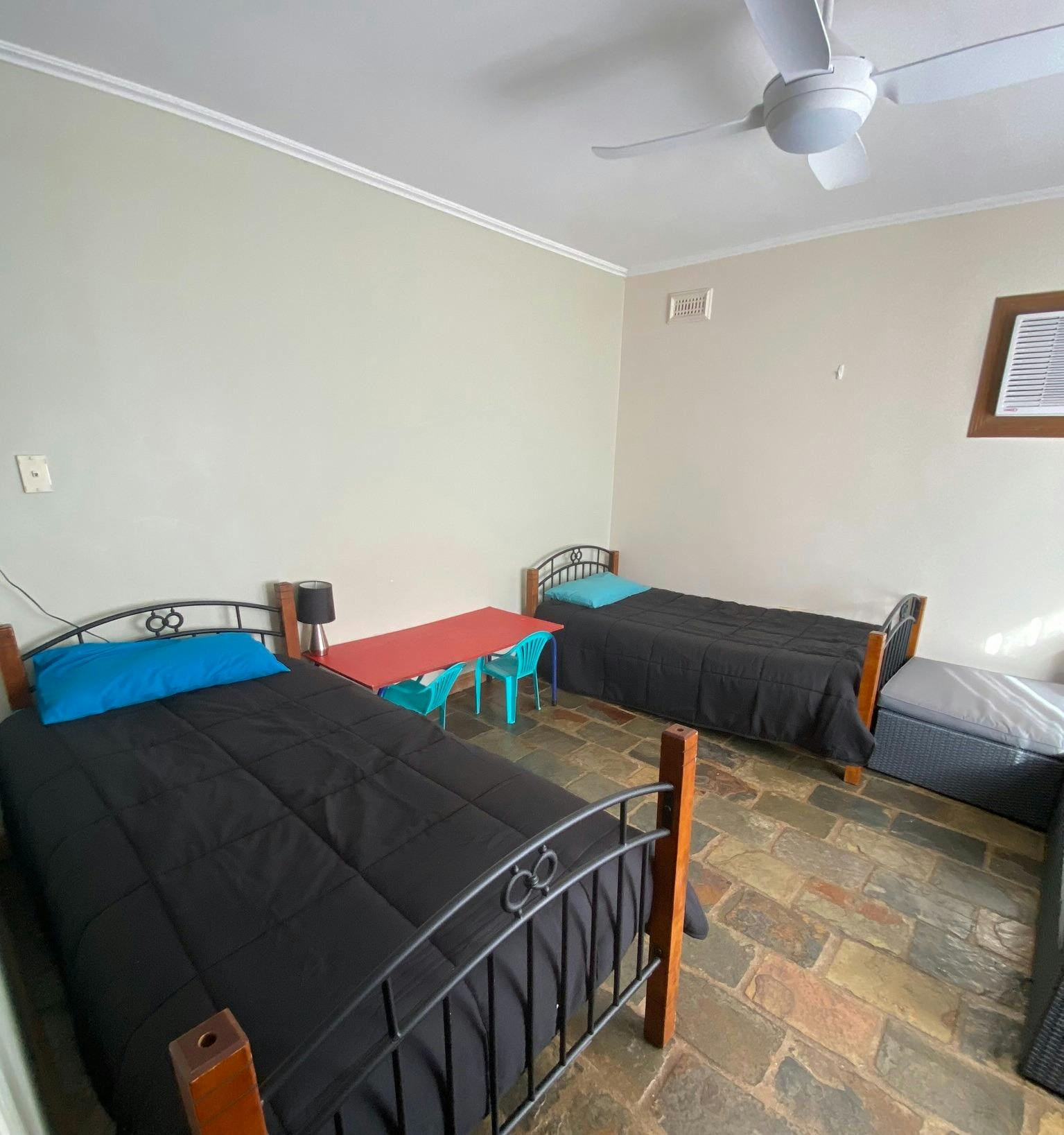 This 3-bedroom house is close to Port Lincoln Hospital and the town CBD. Bedrooms 1 and 2 each have queen beds, while the 3rd bedroom has a single bed and a cot. The family room also contains 2 single beds. The main bathroom features a separate bath and shower. The second bathroom is wheelchair accessible, with a roll-in shower, safety rails, handles, and a shower chair. There is a large, air-conditioned family lounge room, a dining area, and a fully equipped kitchen. The enclosed yard has undercover parking. Pets are welcome on request — an extra AUD60 charge applies for the stay.