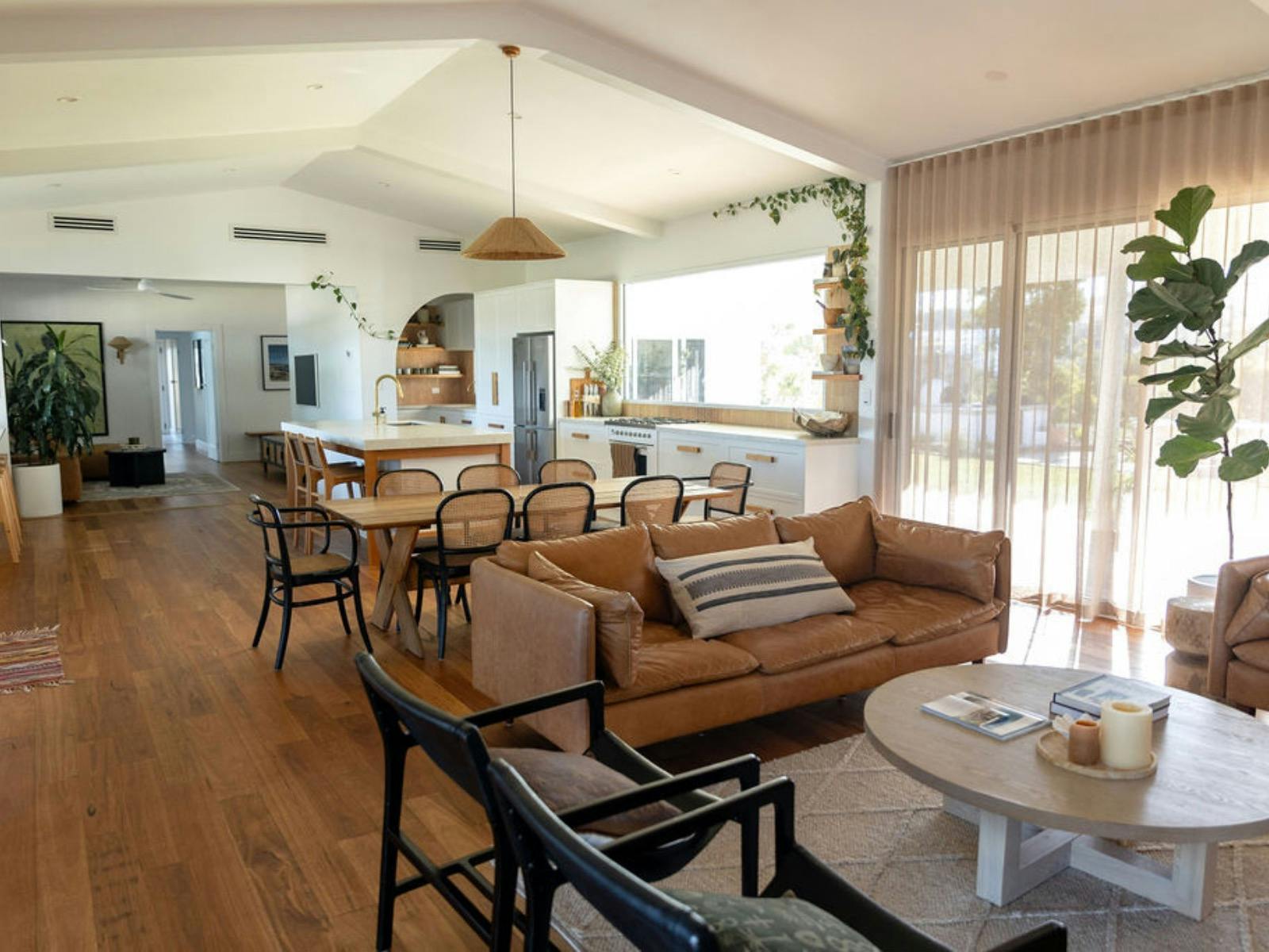 Children will love the dedicated play area, featuring a basketball court, half-pipe, trampoline, cubby house, and sandpit, while adults can unwind in the garden oasis with chickens, fruit trees, herbs, and vegetables. Guests with boats will appreciate ample space for parking and an outdoor hot water shower, ideal after a day at the beach or on the water.