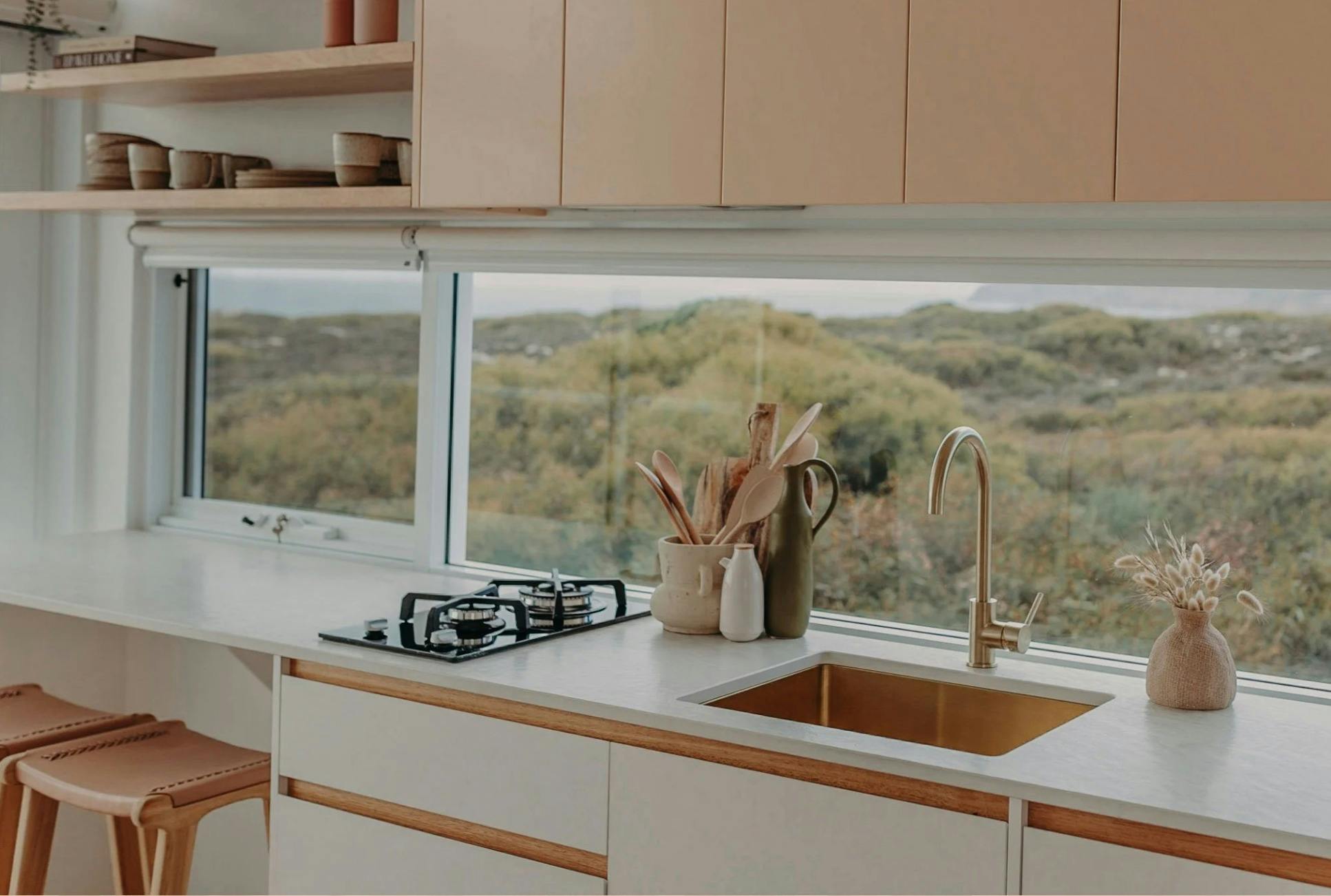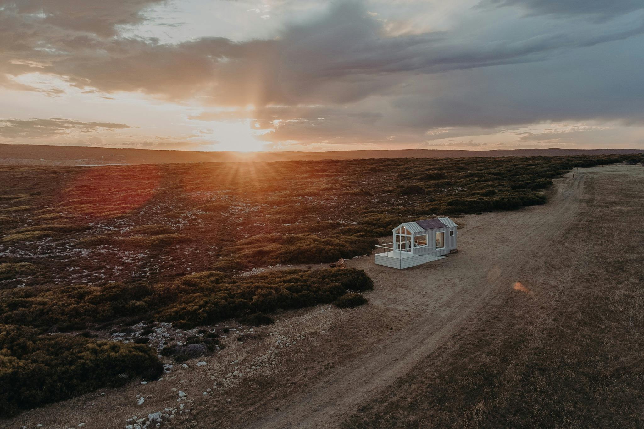 You’ll find Yambara just 80m from Sandy Point Beach, a private oasis overlooking Sleaford Bay and the Port Lincoln National Park. A beach lover’s paradise, this section of coastline is known for spectacular whale watching and panoramic views, all visible from the architecturally designed, luxurious Tiny Abode. Yambara is on the shores of Sleaford Bay. The beach in front of you is called Sandy Point Beach. To the south, the furthest headland you can see is part of Whalers Way. The scenic drive track can be clearly seen heading up the bluff.