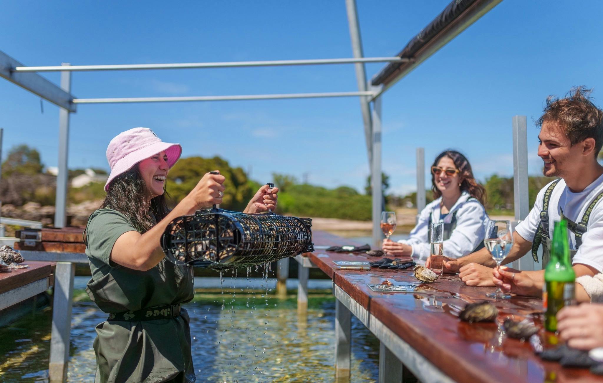 Head to Coffin Bay Oyster Farm on the Eyre Peninsula and experience the award-winning Oyster Farm wading tour and Oyster tasting experience. The original spot where you can sit in the water and enjoy fresh oysters straight from the sea!