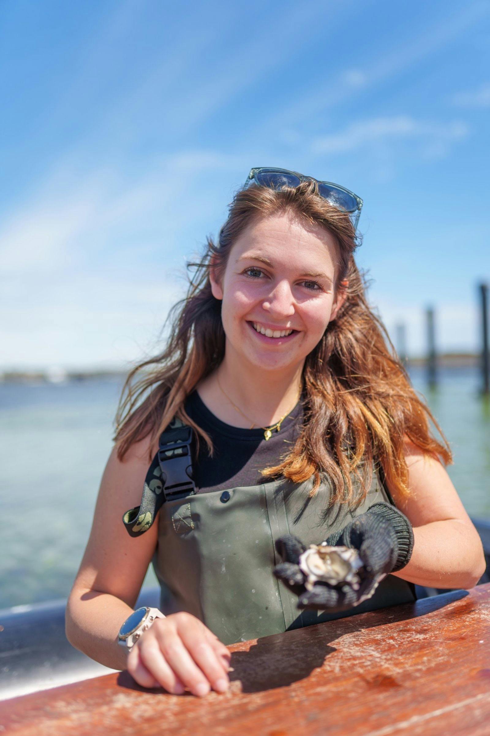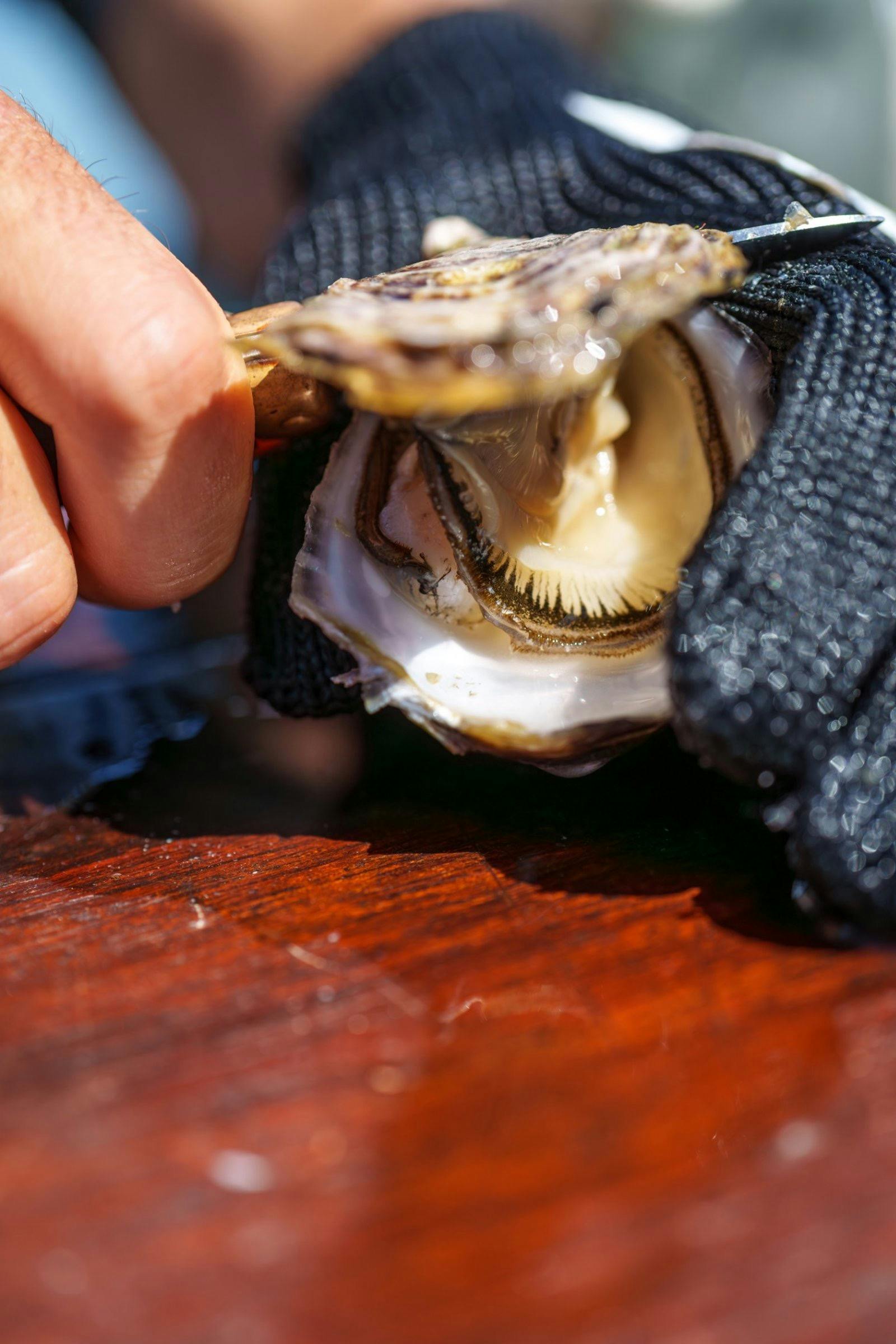 Wearing waterproof waders, you’ll wade out into the water, and sit at their semi-submerged tour deck, ‘The Salt Water Pavilion’ – located right in a working commercial Oyster farm.