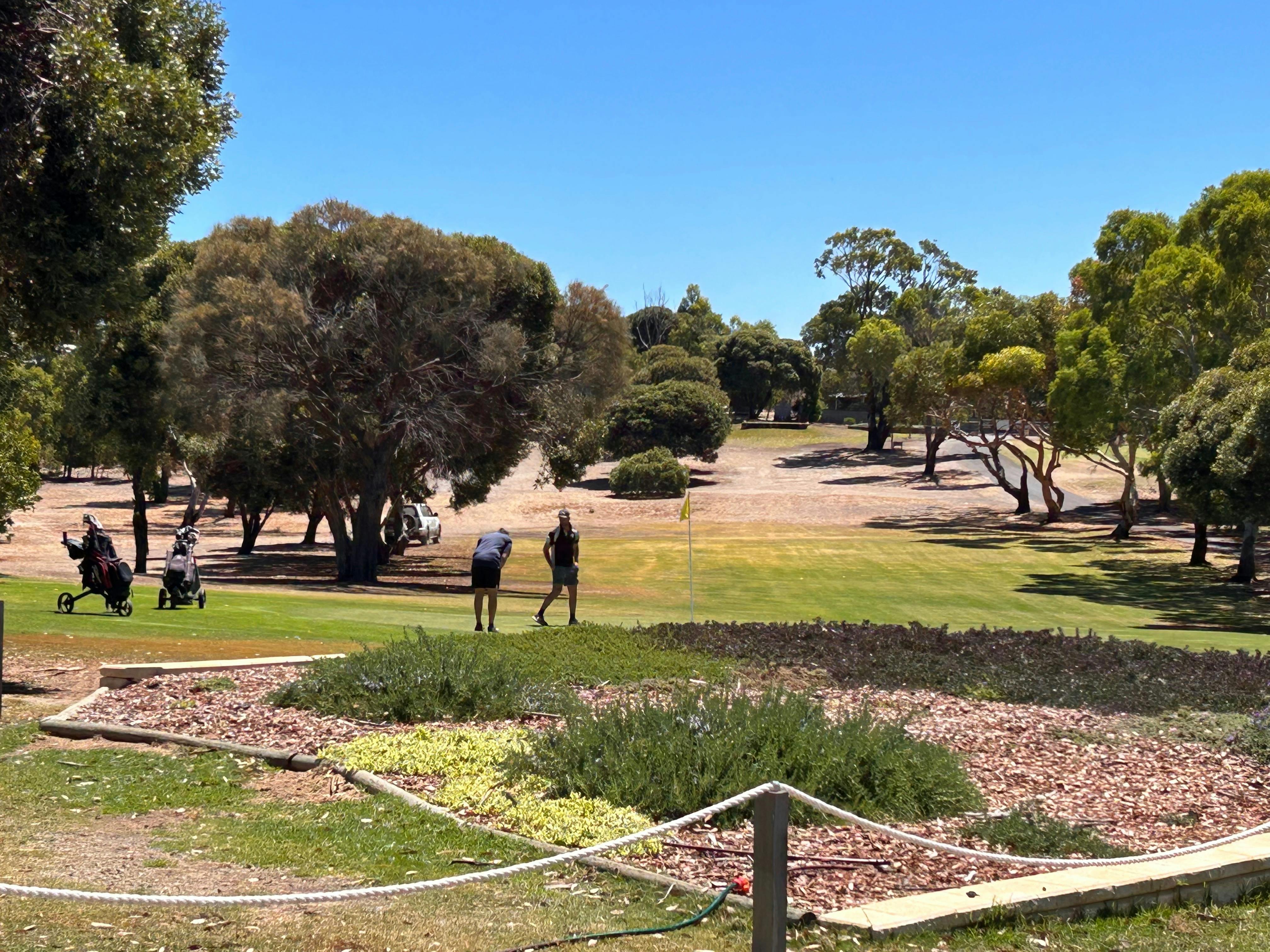 Players enjoy the serenity of the tree-lined lush kikuyu fairways which hug the sandhills along the edge of the Coffin Bay National Park.