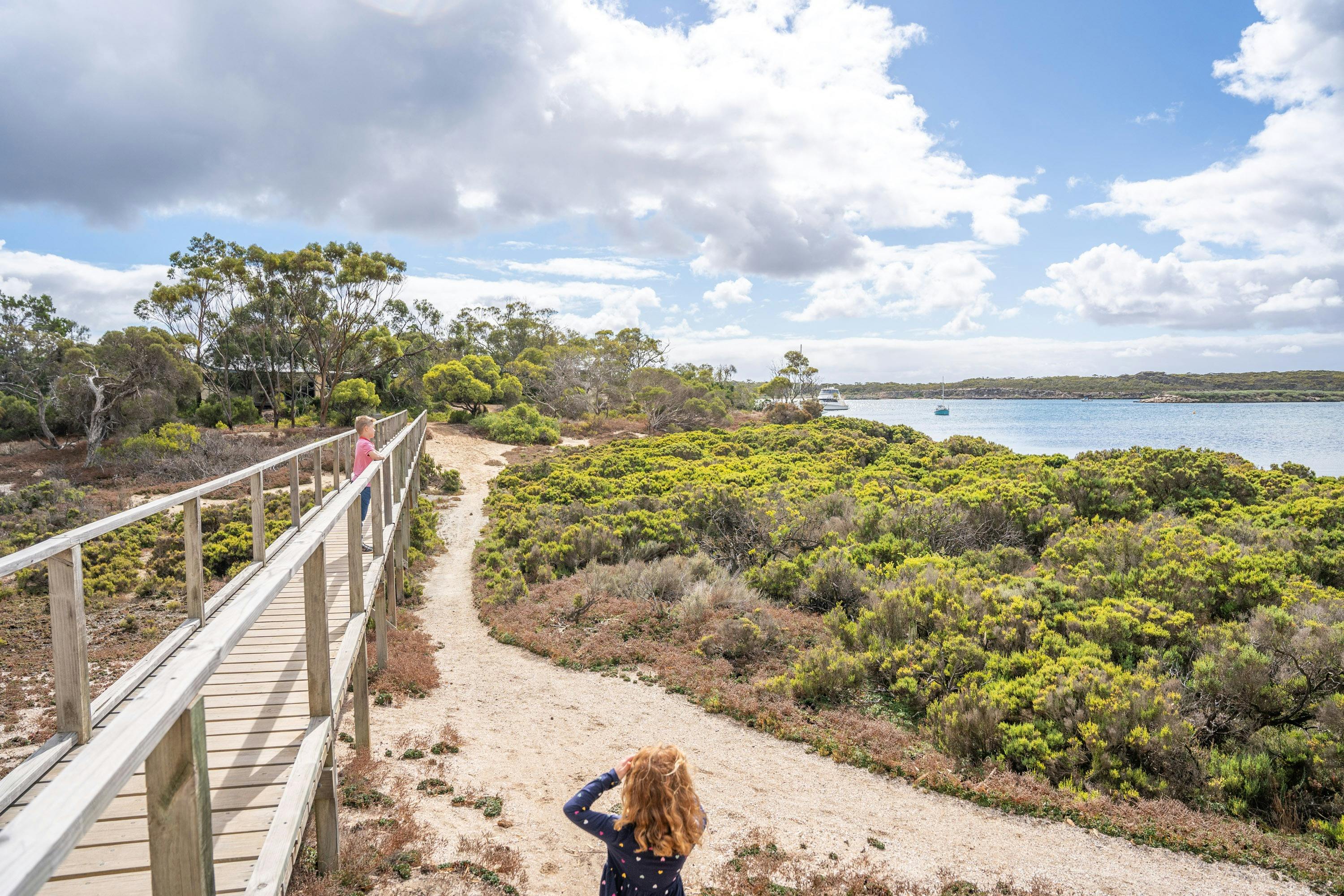 Follow the Coffin Bay Oyster Walk as it meanders through the coastal vegetation and idyllic shoreline of Coffin Bay and Kellidie Bay, one of Australia’s premier oyster growing destinations. The Oyster Walk follows the coastline between Long Beach in the west and Snapper Point in the east, passing the Coffin Bay boat ramp, town centre and jetty. A loop through the Kellidie Bay Conservation Park incorporates a climb up to the Coffin Bay Lookout where you are rewarded with sweeping views over the waterways.