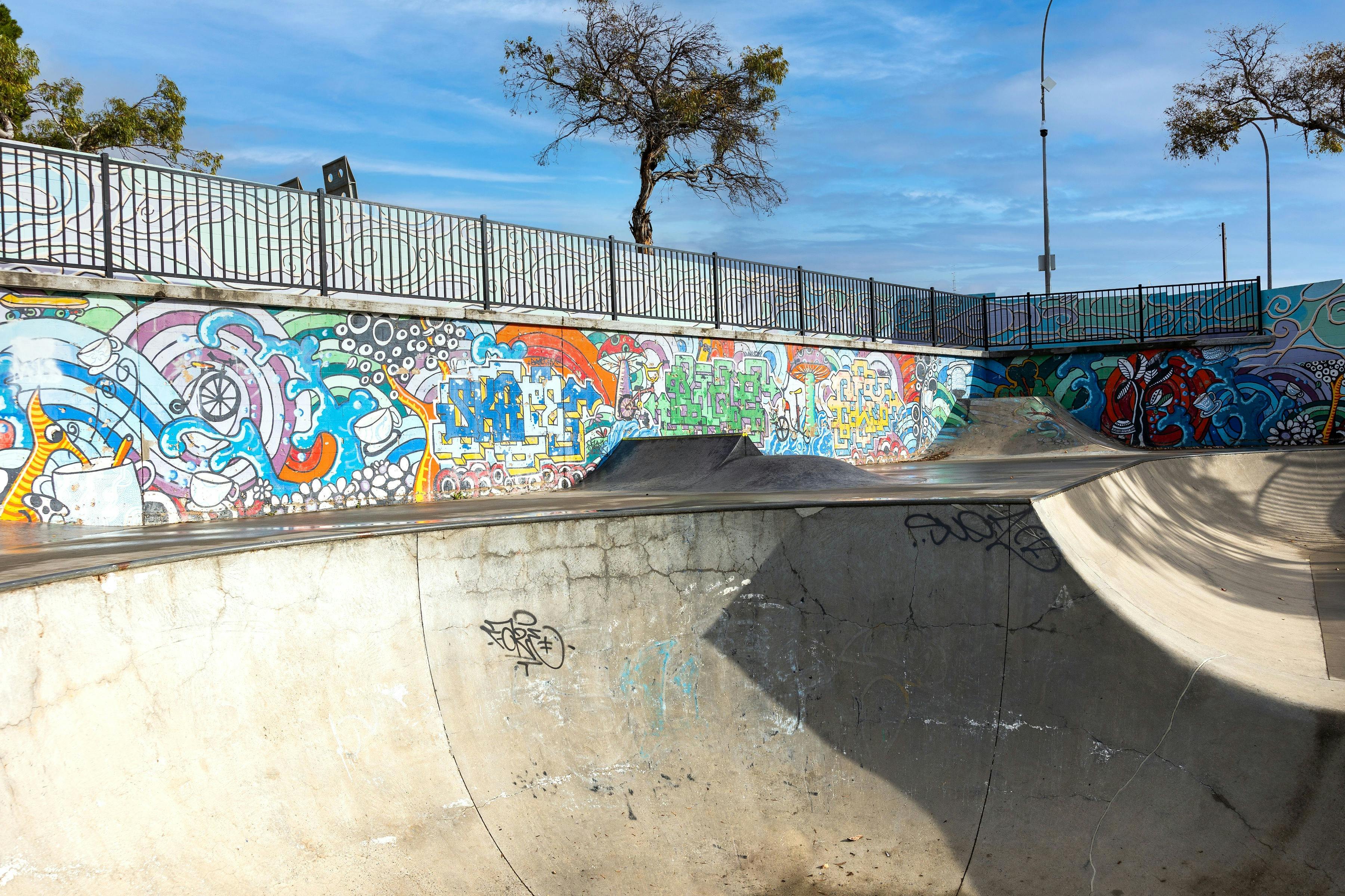 The Sk8 Park Includes 12 skate features; including a mellow quarter pipe, bank to wall spine, mogul mellow banked hip and block seats.