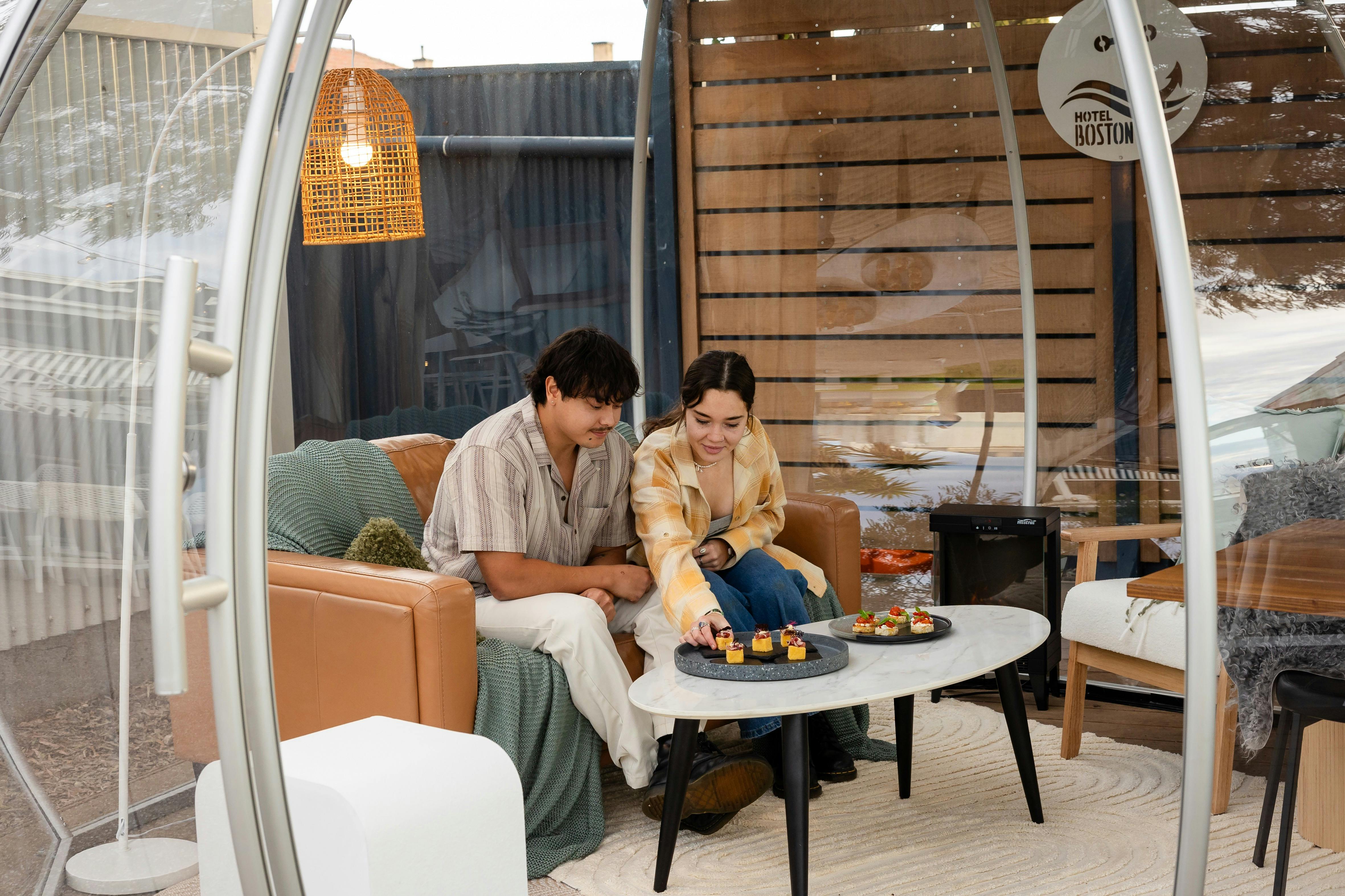 The Boston Winter Igloos are situated in the Alfresco Area of the Hotel Boston offering stunning views of Boston Bay.