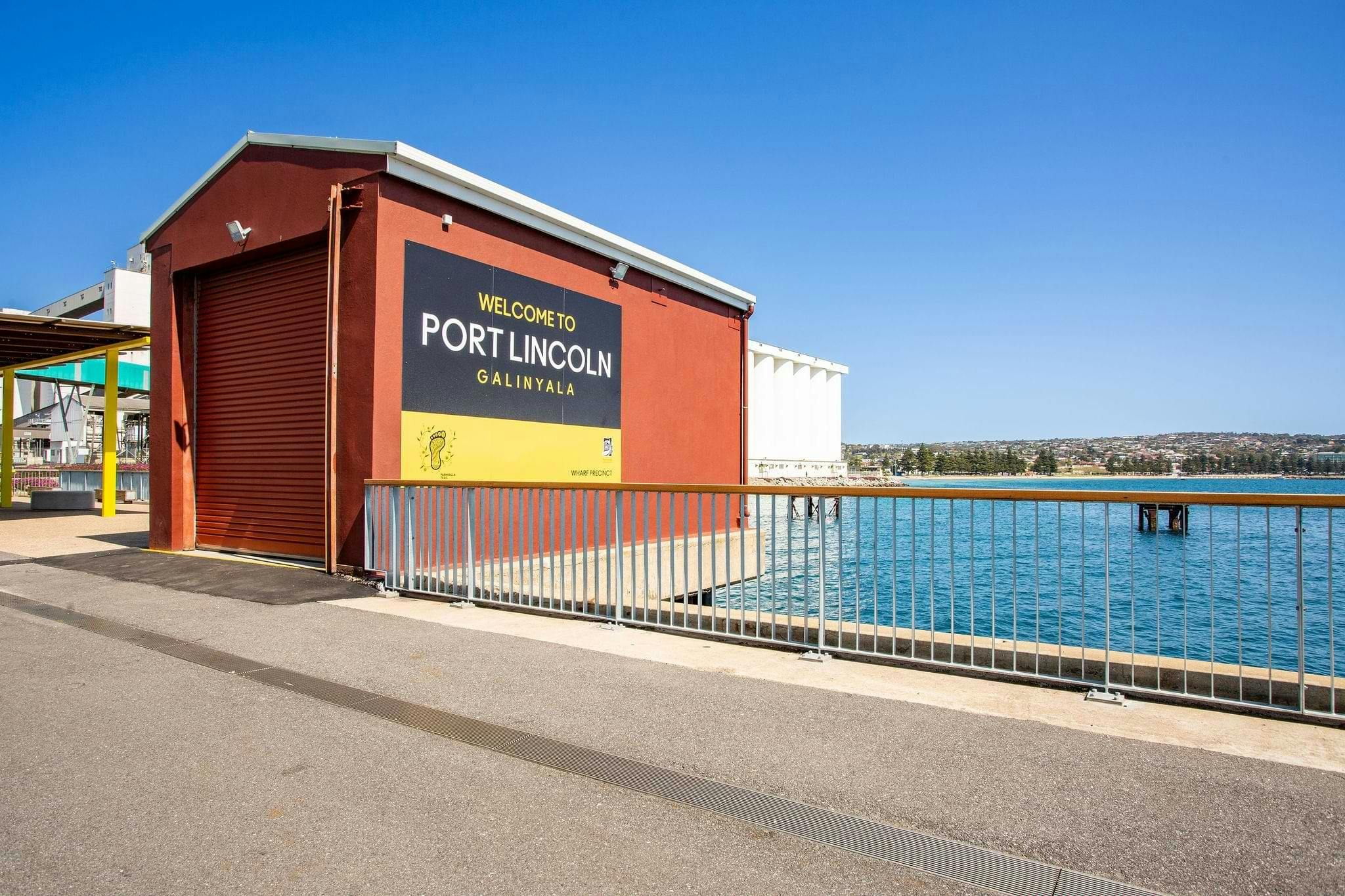 Located at Brennen’s Jetty, adjacent the former Sub-Station being the ‘pop-up Visitor Information Centre’ and linked to the Parnkalla Trail Wharf Precinct, passengers will be able to safely make their way to the terminal facility to access shade and seating.